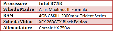 I nostri test sono stati effettuati sulla seguente piattaforma: