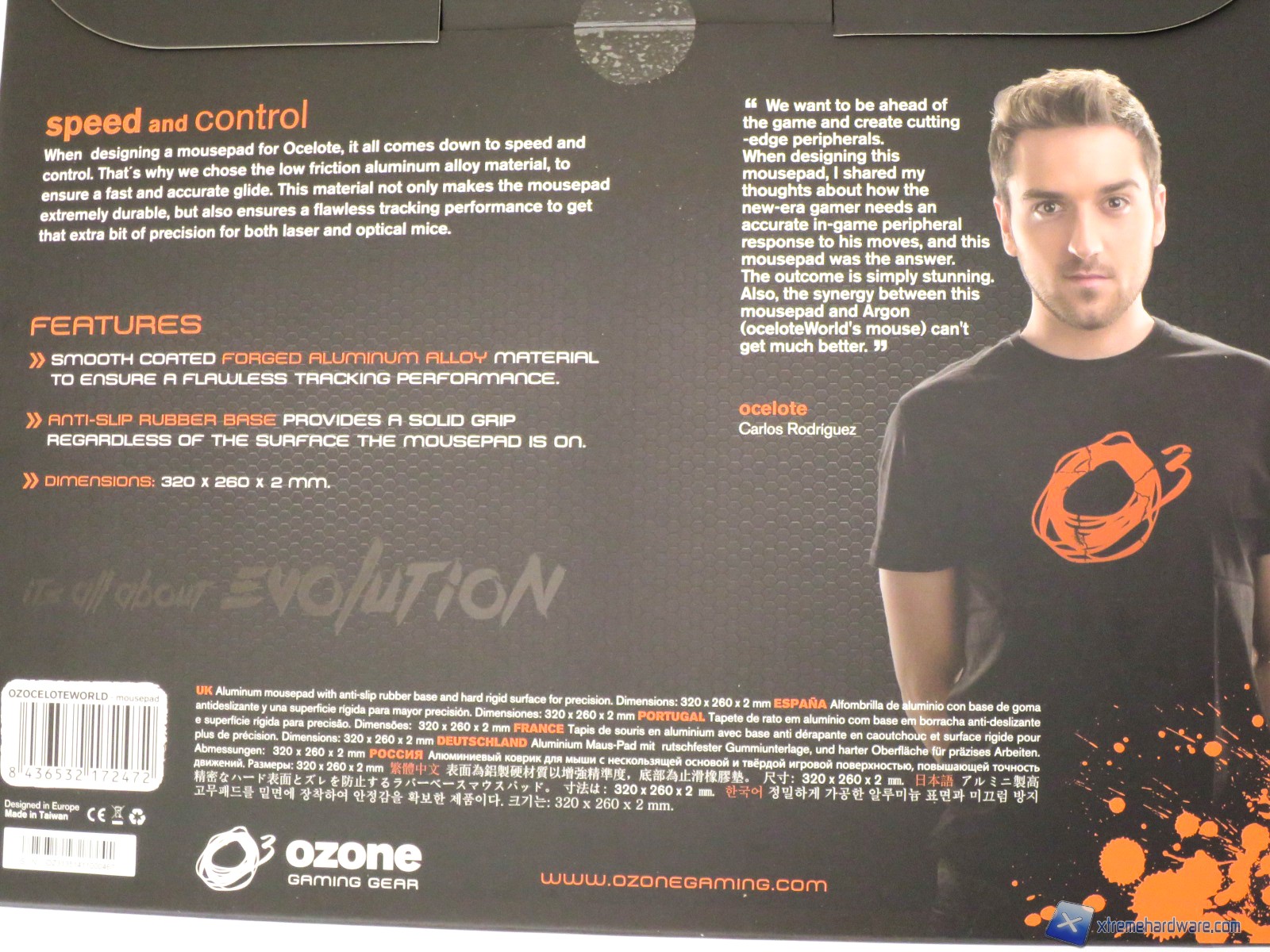 Con il mouse Ozone Argon Ocelote World, la stessa Ozone ci ha omaggiato di un mousepad denominato Ocelote World Advanced Aluminum che come noterete già dalla confezione appartiene alla serie Ocelote World.